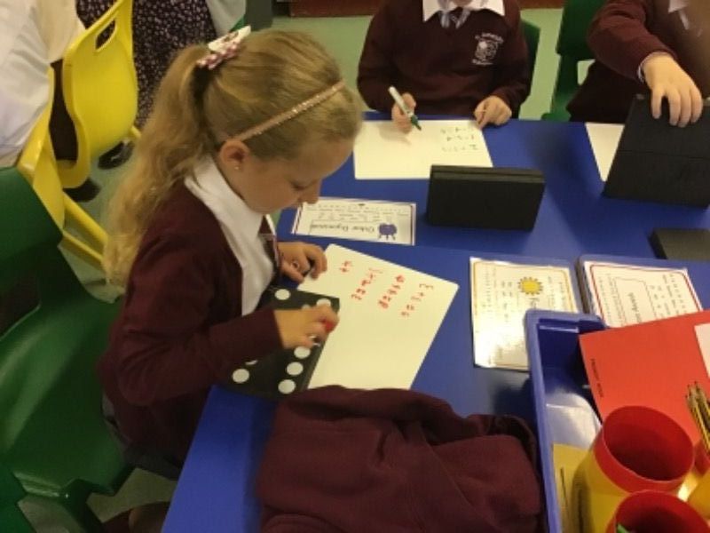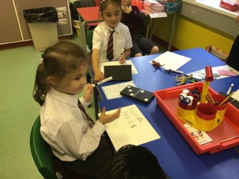 Year 3 love working with our friends to add and record the answers on whiteboards.