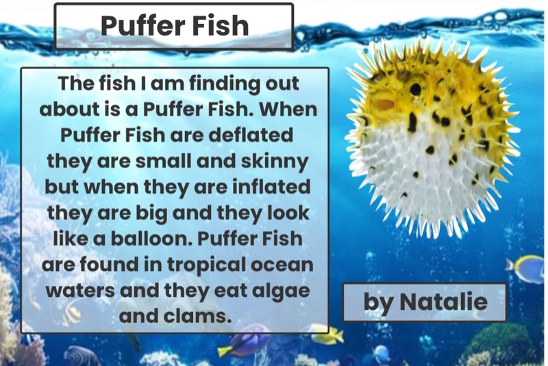 Boys and girls in Year 3 are excited about the new theme - Something Fishy. They have plenty of things they would like to find out! Already they know lots of interesting facts about sea creatures and about fish they have researched. Enjoy some of the amazing work they have been posting up to your Seesaw journals.
