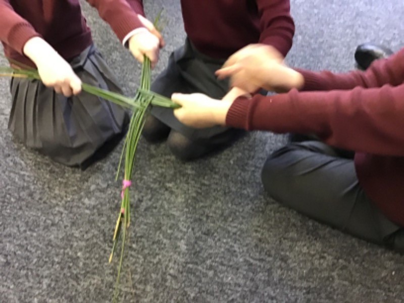 We used both reeds which have been traditionally used in Ireland to create St. Brigid’s crosses for hundreds of years and paper straws to create smaller crosses.