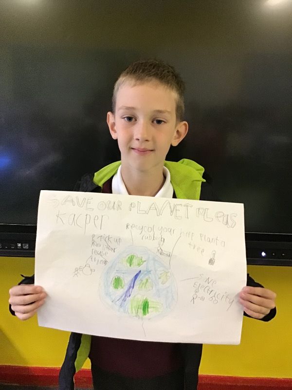 Today the children in Year 3 learned all about the impact of Global Warming on our planet. We watched a video and made posters to show how we can all help. We promised to recycle more, to save electricity and to plant some trees. We learned that children all over the world were going to a protest today. We had our own rally all around the playground.