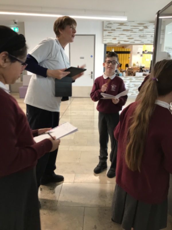 Today Miss Tubridy’s Year 5 class attended an art exhibition and workshop at the University of Ulster’s Art College. Last year the class worked on the Virtually There Art Project with Mrs Cross and the artist, Naomi Draper. Today was a very special occasion as it marked our last ever Virtually There session! After 5 years of working with Naomi, and on behalf of all the children who have enjoyed the Virtually There experience, we would like wish Naomi all the best for the future and thank her for all the exciting art experiences. Around 125 of St. James’s pupils have been truly inspired and were introduced to art through learning in a most novel way. Virtually there but not forgotten!